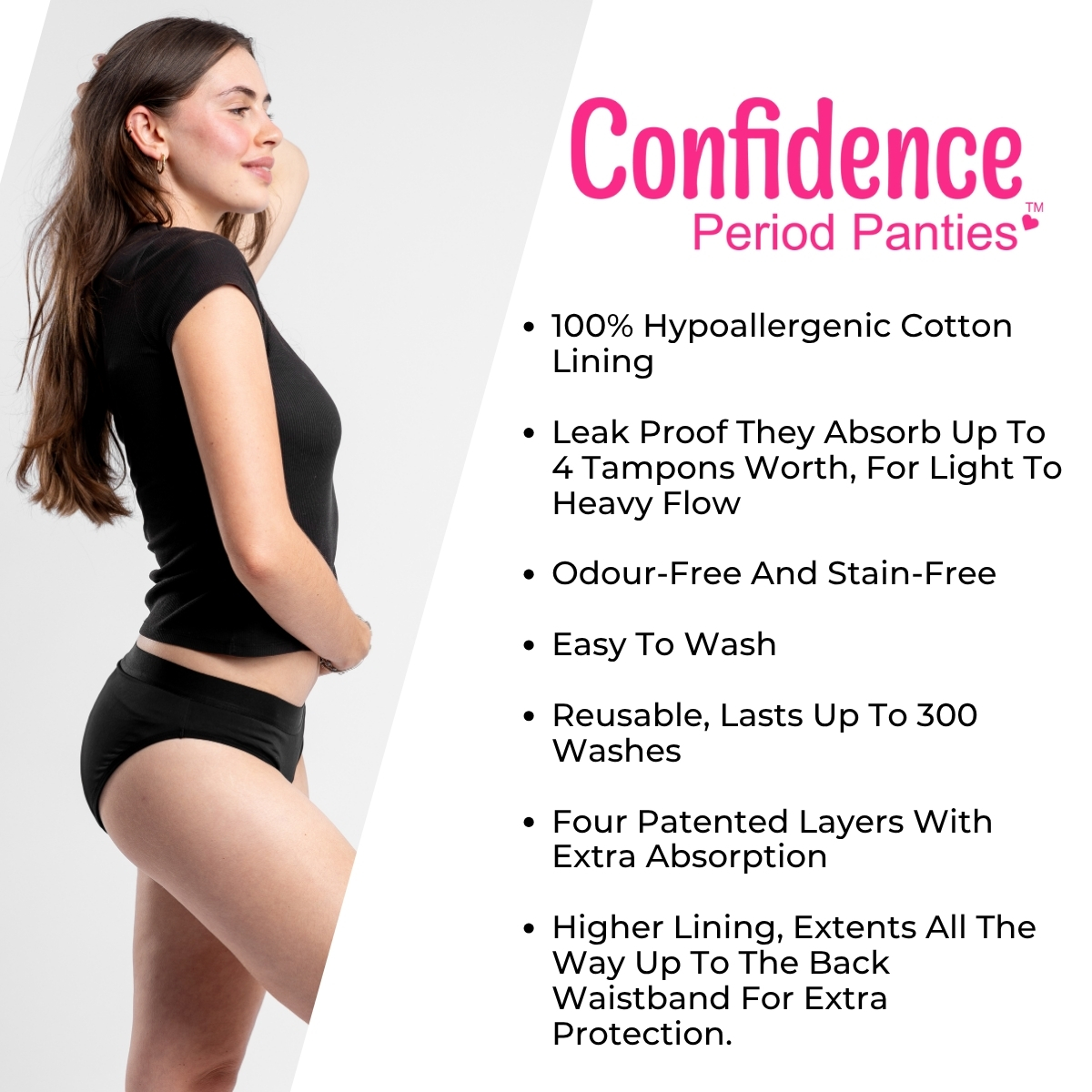 - REDUCES ODOUR: Keep unwanted odours at bay with Confidence Period Panties. Our specialized fabric neutralizes odours, helping you stay fresh, clean, and confident throughout your busy day.
